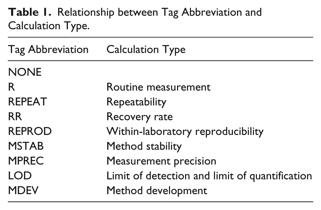Relationship between Tag Abbreviation and Calculation Type.