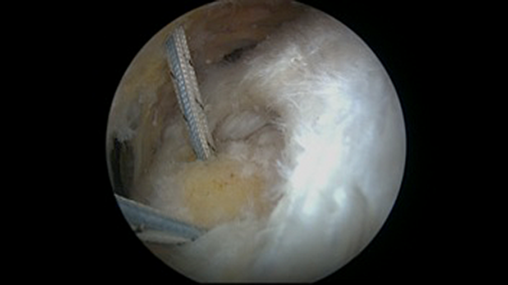 Full-thickness supraspinatus tear viewed from the lateral portal.