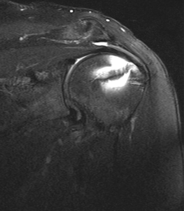This postoperative magnetic resonance coronal T2-weighted image demonstrates an intact repair.
