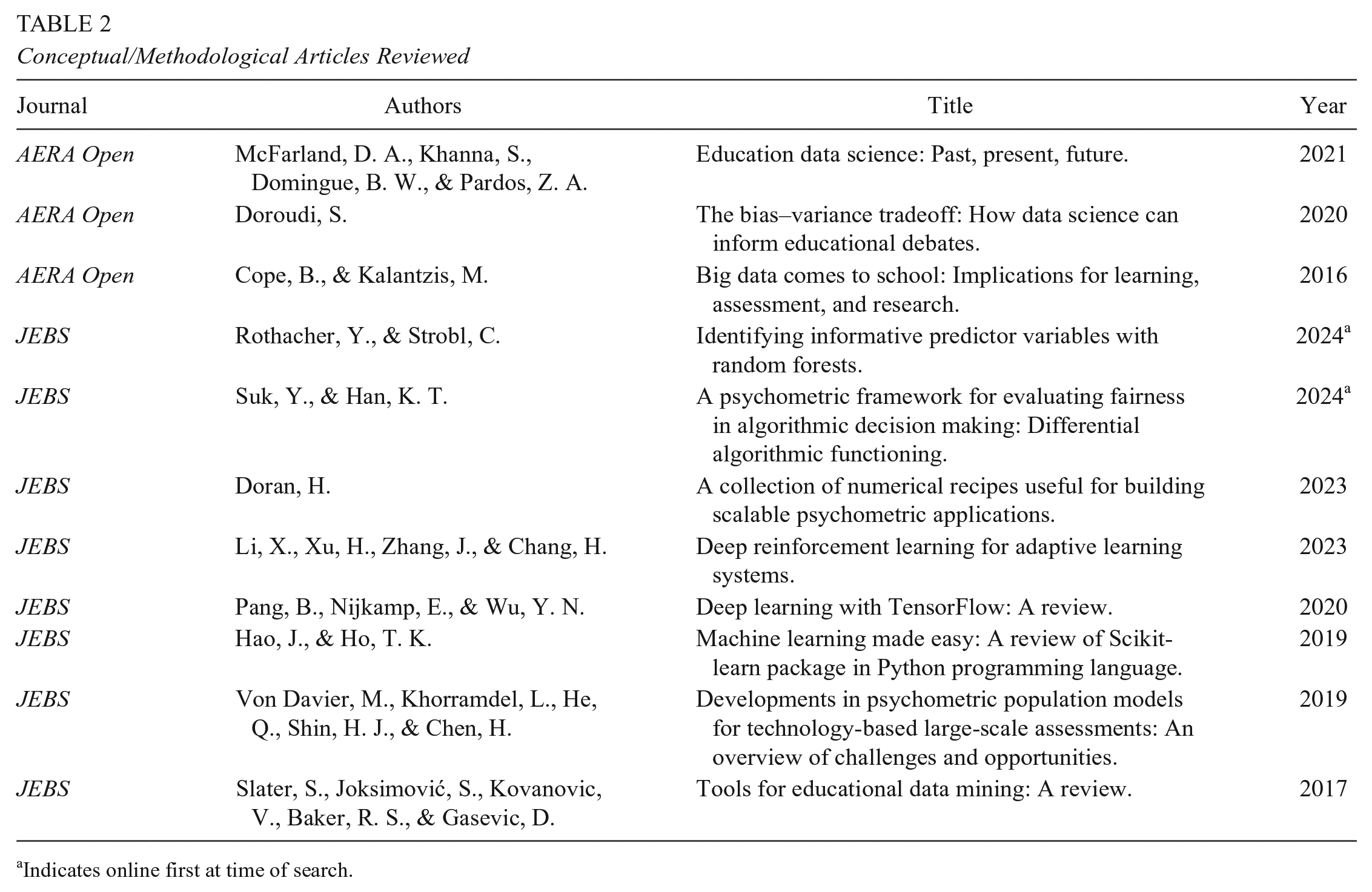 Second, any list of threats necessarily will be incomplete. Indeed, the number of threats identified by Shadish et al. (2002) tripled between 1957 and 1979 (Campbell, 1957; Cook & Campbell, 1979). The threats identified in this article are thus not expected to be comprehensive. Although machine learning applications in education are increasing quickly, the literature base is still relatively young; new challenges likely will be identified as the field develops. Similarly, best practices are also likely to grow and evolve, meaning that the approaches discussed here and in the protocol should be considered as examples rather than as a comprehensive list of requirements.