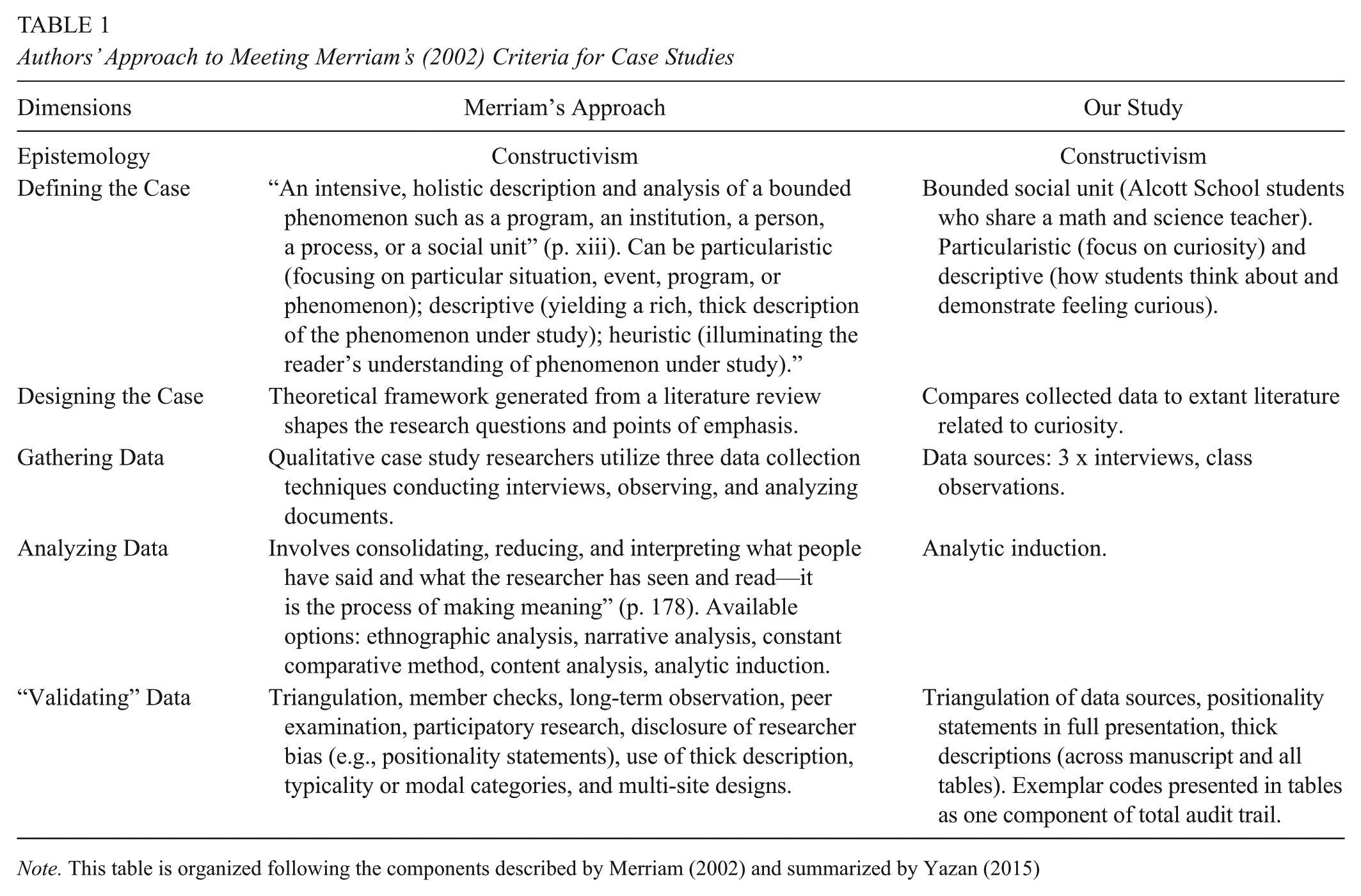 Authors’ Approach to Meeting Merriam’s (2002) Criteria for Case Studies