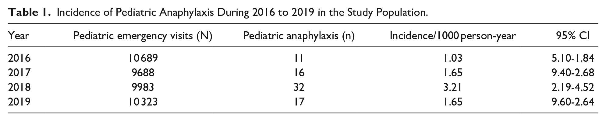 Incidence of Pediatric Anaphylaxis During 2016 to 2019 in the Study Population.