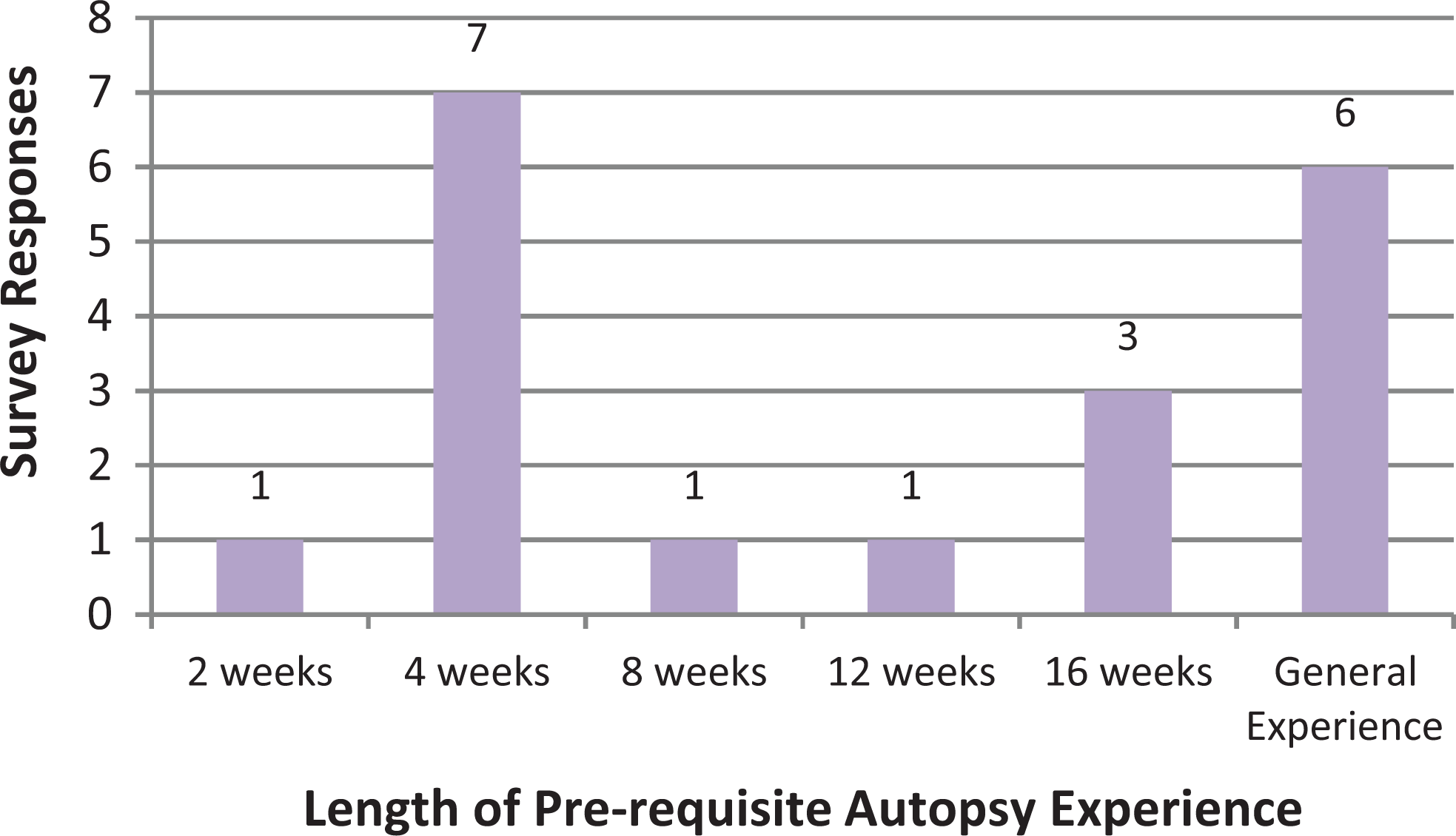 It was this ambiguity and lack of uniformity that inspired our investigational survey to ascertain the formality and depth of forensic pathology training during pathology residency. The results of this survey, taken with changes to our own forensics curriculum, were then used to generate a list of recommendations or minimal good practices to assist in improving the scope and standardization of forensic pathology training in residency.