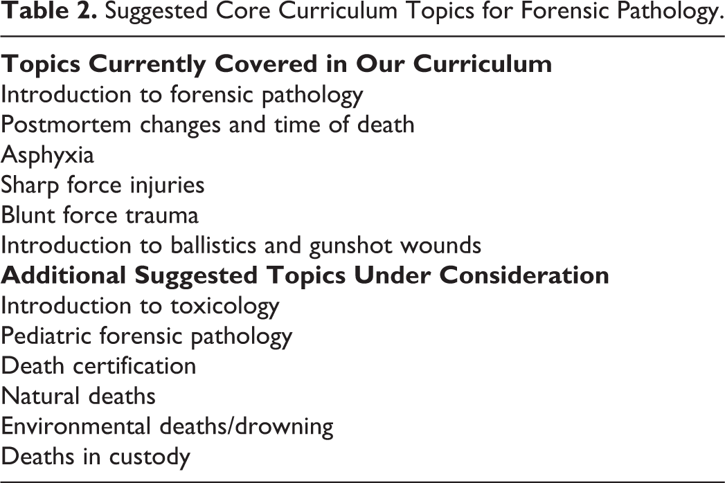 Suggested Core Curriculum Topics for Forensic Pathology.