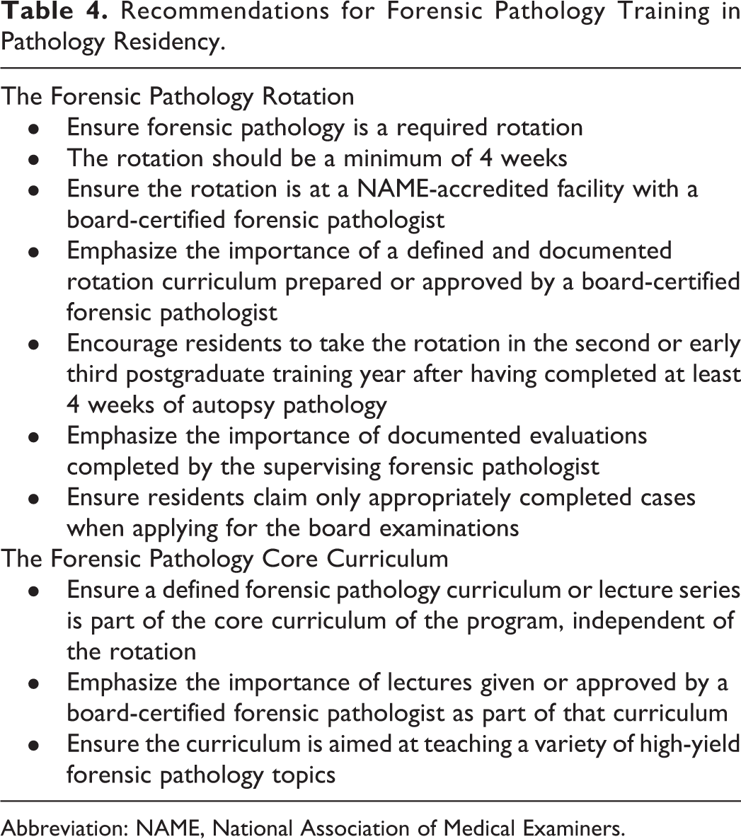 Recommendations for Forensic Pathology Training in Pathology Residency.