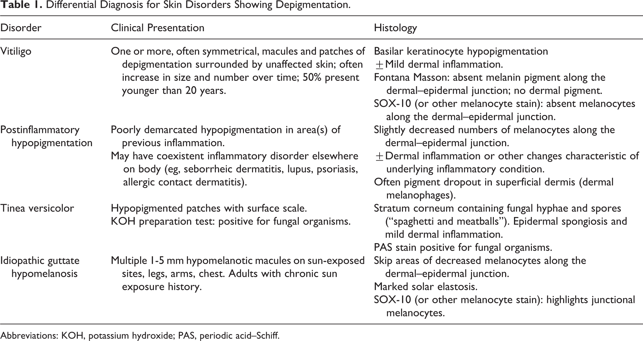 Differential Diagnosis for Skin Disorders Showing Depigmentation.