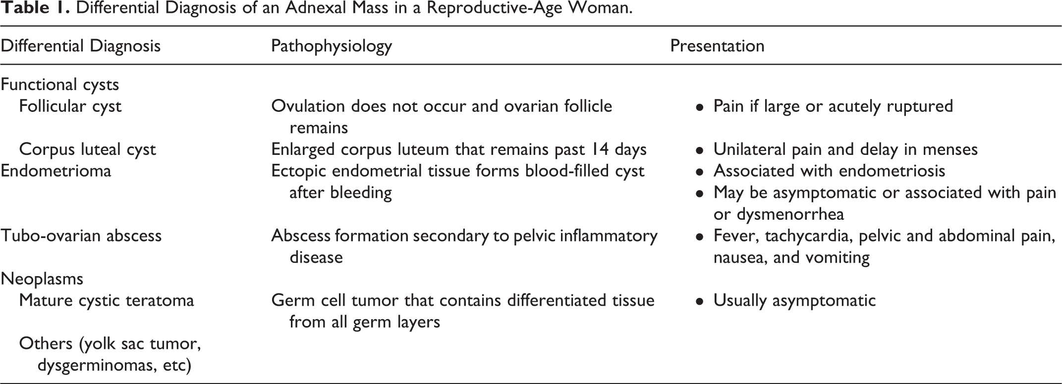 Differential Diagnosis of an Adnexal Mass in a Reproductive-Age Woman.