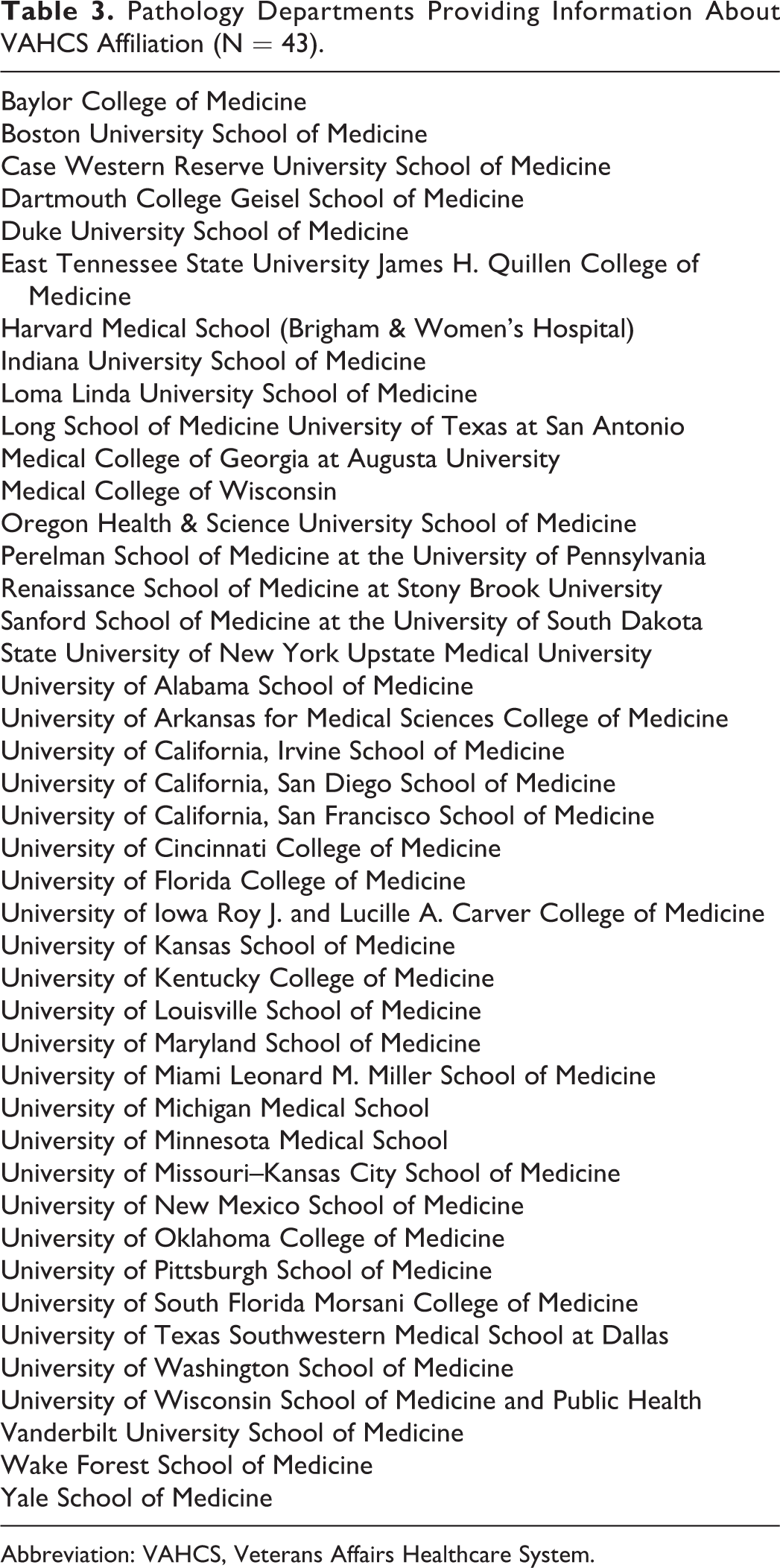 Pathology Departments Providing Information About VAHCS Affiliation (N = 43).