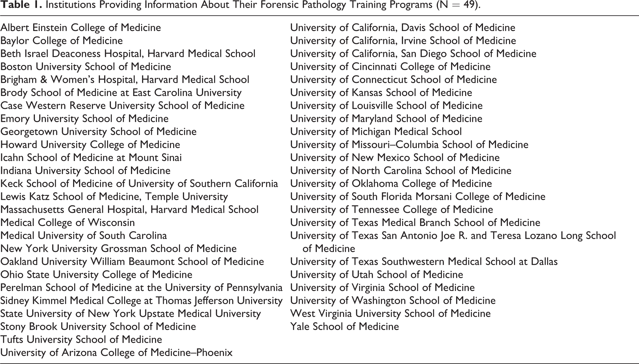 Institutions Providing Information About Their Forensic Pathology Training Programs (N = 49).