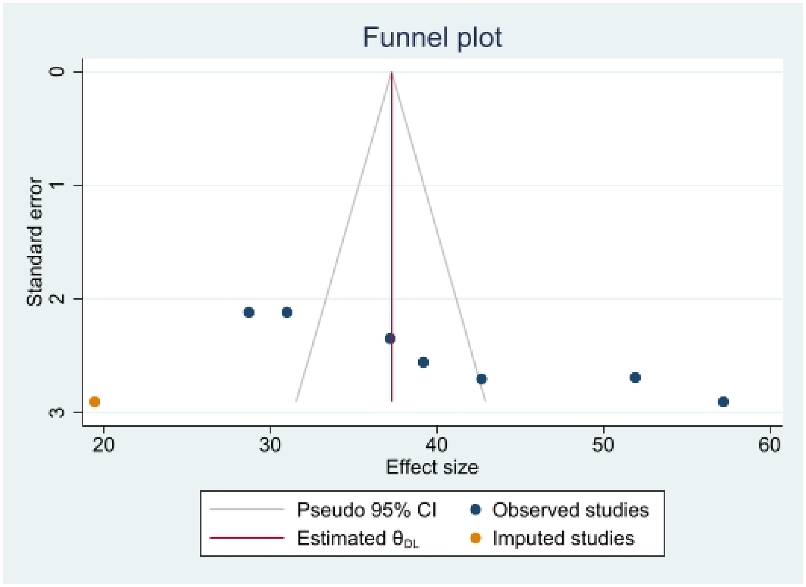 Funnel plot with trim and fill for publication bias analysis among the included studies.