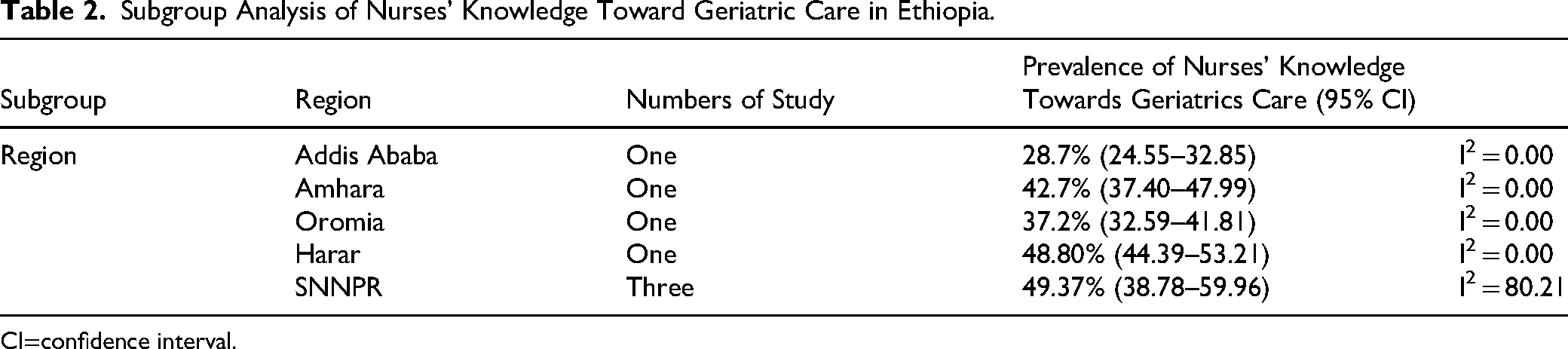 Subgroup Analysis of Nurses’ Knowledge Toward Geriatric Care in Ethiopia.