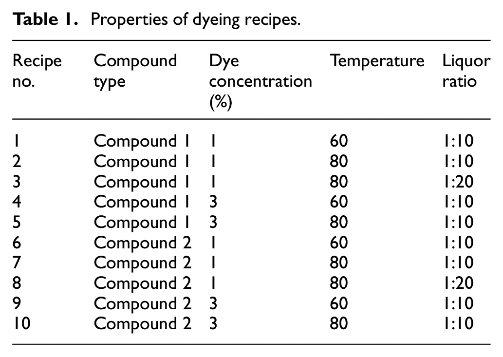 Properties of dyeing recipes.