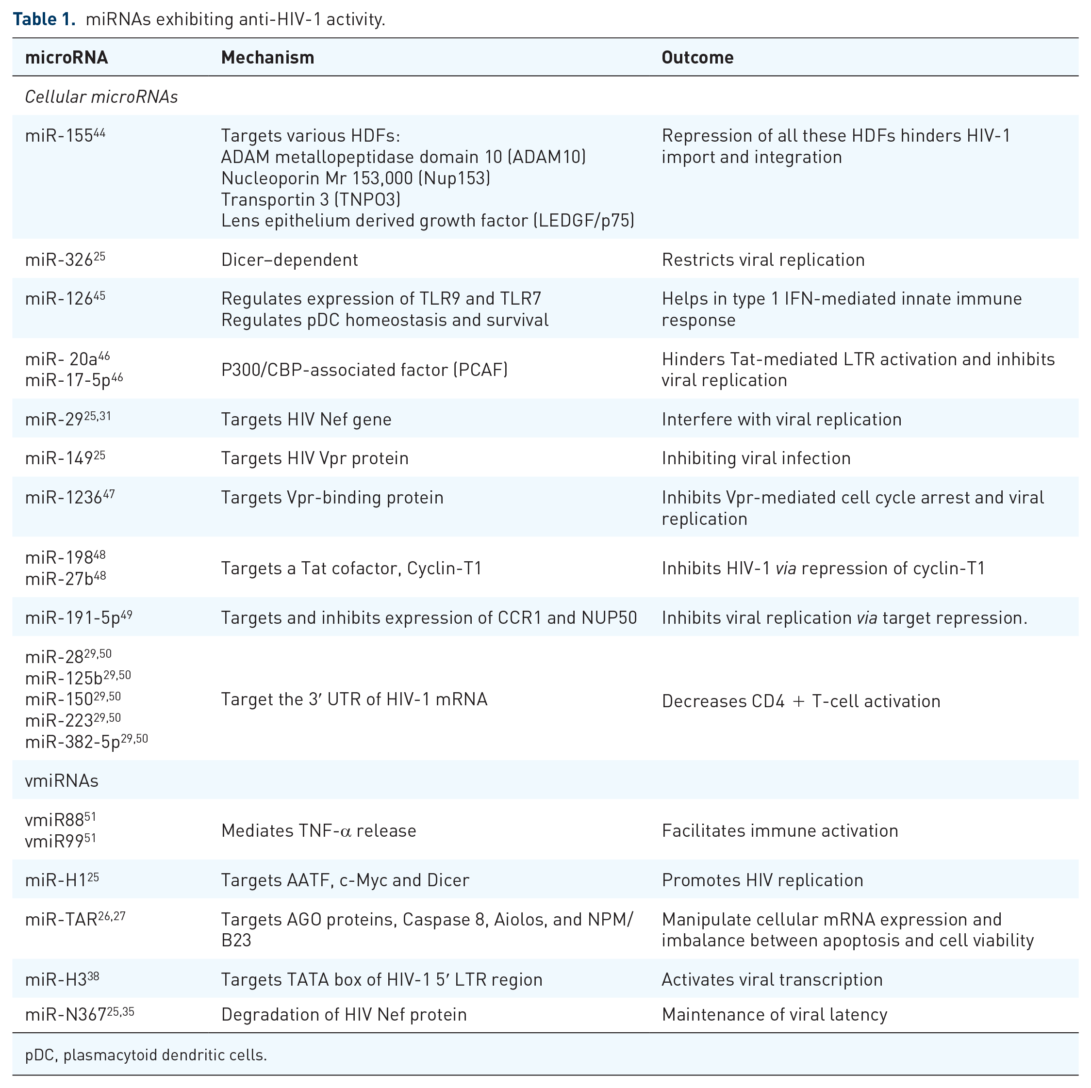 miRNAs exhibiting anti-HIV-1 activity.