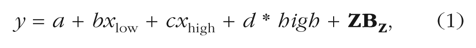 where xlow = x – xc if x < xc and 0 otherwise, xhigh = x – xc if x ≥ xc and 0 otherwise, and high = 1 if x ≥ xc and 0 otherwise.
