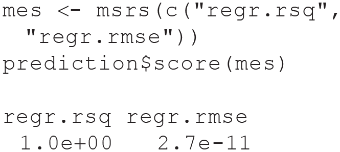 Performance measures for regression quantify a “typical” deviation from the true target value. The default measure is the mean squared error (
