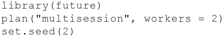 Because benchmark experiments easily become computationally intensive, we use parallelization (speeding up computations by using more than one core of the computer simultaneously), which is provided by the