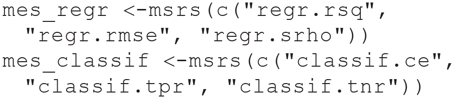 We choose an extended set of performance measures for our regression and classification benchmarks. For regression, we look at