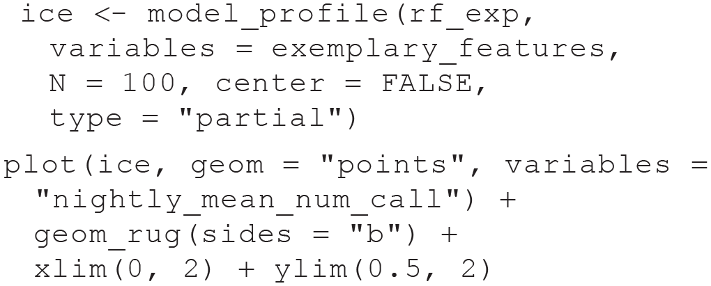 An alternative to PD are “accumulated local effects” (ALEs; Apley & Zhu, 2020) plots. Although ALEs plots are often discussed as an improvement on PD, this does not seem to be without controversy because both estimate slightly different concepts. Molnar (2019) and Henninger et al. (2022) provided a clear introduction on both methods.