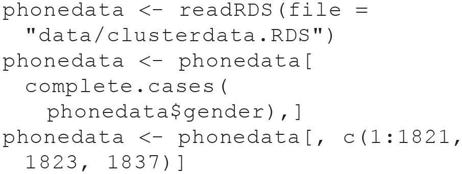 First, we load the PhoneStudy data set and remove some administrative variables we do not use in our tutorial. We also remove four participants who did not report their gender: