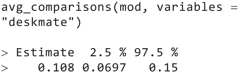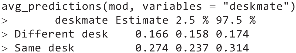First, we look at the average (counterfactual) prediction if all pairs were (or were not) deskmates:
