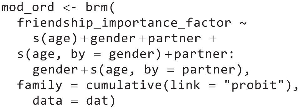 Thus, treating the outcome as ordinal gives us slightly more detailed results because we can see how precisely the response shift between categories, but it does not affect our central conclusions: Although the point estimate suggests that people in a relationship report that their friends are slightly less important, the credible interval suggests that there is low certainty about the strength of the association, and it may also plausibly be zero or even negative.