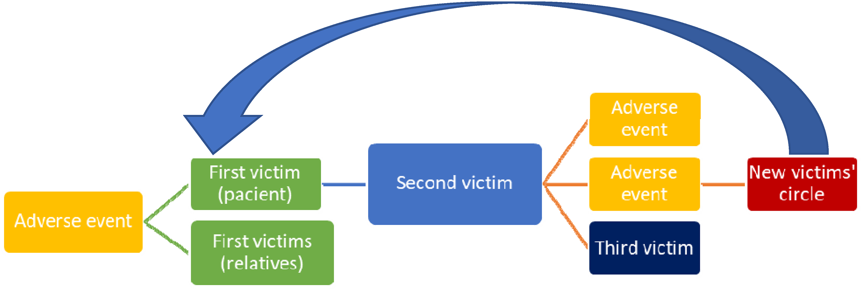 When patients visit their healthcare providers, they are not aware of their state of physical well-being or mental state, nor of potential stressful events that may be occurring in their private lives. Patients assume that their healthcare providers are in optimal physical and mental state and that these always provide qualified medical assistance. There is ample evidence, though, that shows that doctors and nurses are more likely to be involved in adverse events when they are mentally unwell, leading to potential harm and even death of patients.1,2 Moreover, the actual involvement in an adverse event has wide ranging and far-reaching consequences that could be the cause for subjecting healthcare professionals to mental ill-health 3 and sudden identity shift from ‘the potentially infallible’ to ‘the potentially fallible’ health professionals. 4 Indeed, an adverse event can lead to negative consequences for patients and their relatives, but also to healthcare workers, and the institutions. 5 So, in the literature the terms first, second, and third victim of adverse events are being used. The first victim is the patient himself and her/his family (relatives). Unexpected adverse events occur rather frequently, and particularly medical errors are reported as being the third-leading cause of death after heart disease and cancer. 6 The second victim is the doctor, nurse or other healthcare professional involved (directly or indirectly) in the adverse event, whereas the third victim is related to the health institution, which could be connected to the reputation of the healthcare institution. The patient safety professionals who are responsible for investigating the adverse event have been also been considered in this classification 7 (Holden & Card, 2019). Regardless of the debate on the use of the term ‘victim’ in this context, 8 reality is that the impact suffered by patients, professionals, and healthcare institutions (as a set of professional teams that care for patients) is much greater than previously known 9 and in the next turn has a direct impact on the safety of next patients who will require healthcare. 10
