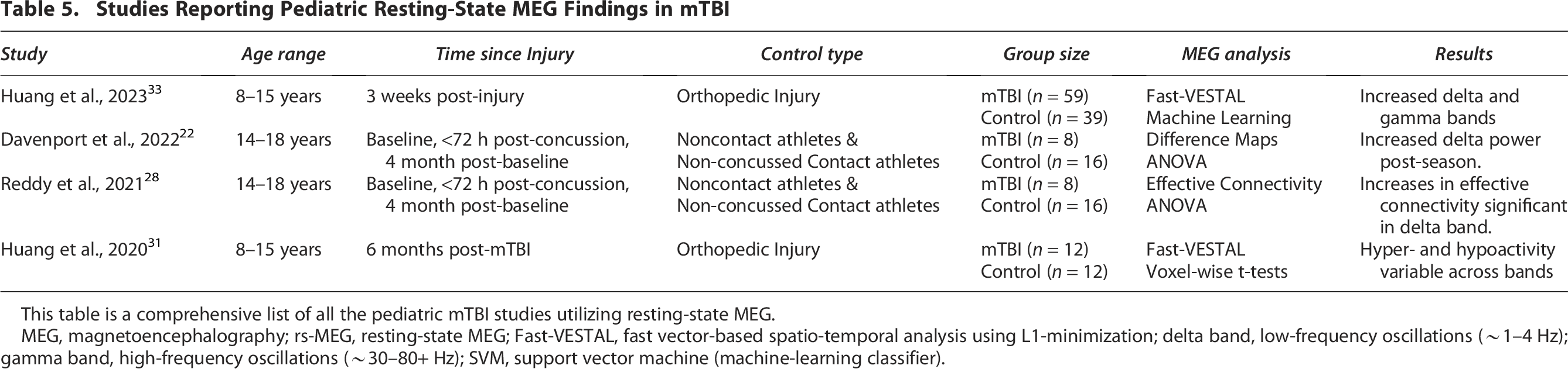 This table is a comprehensive list of all the pediatric mTBI studies utilizing resting-state MEG.