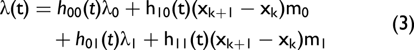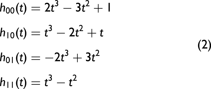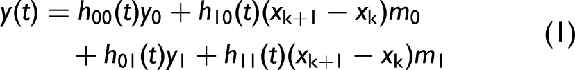 The CHS model (referred to simply as CHS) interpolation method takes as the parameters the pixel locations, the wavelengths of the calibration spectral lines, and the wavelength linear dispersion (slopes) at those wavelengths. Those parameters explicitly appear in the Hermite form of the interpolation function shown in Eq. 3. The slopes at the nodes