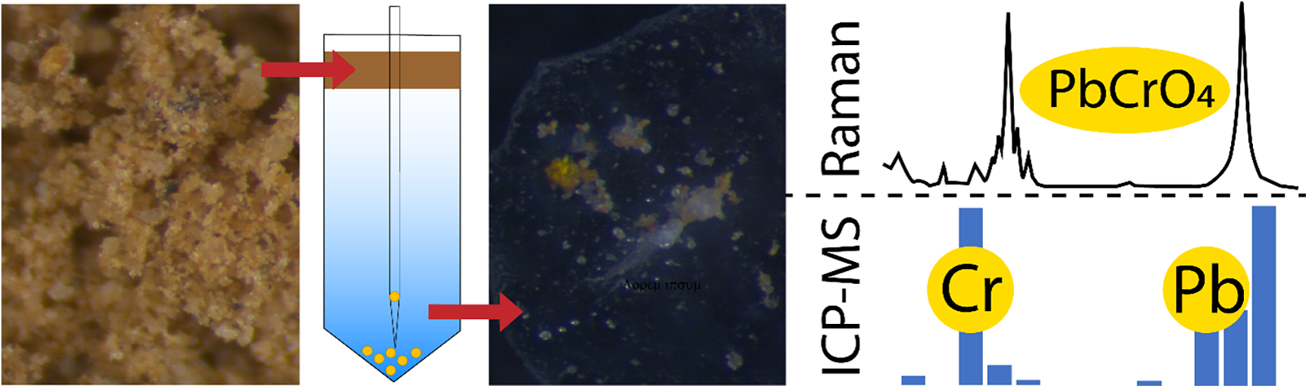 As shown in Table I, ICP-MS analysis of the isolated particles scraped from the microscope slide from the density separation method resulted in molar ratios of Pb to Cr near 1:1 in both samples as well as the reference standards. These results also agreed with the molar ratio determined from ICP-MS analysis of the bulk cinnamon. This criterion has been cited in multiple publications as an indicator of lead (II) chromate.14,18