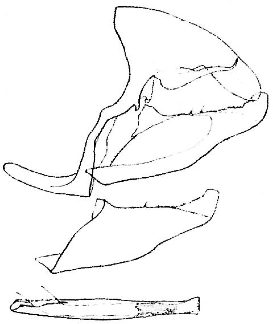 Male genitalia of Cissia similis (modified from Forster, 1964), lateral view.