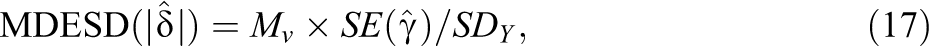 By inserting Equation 8 into Equation 17, we derived the MDESD for the standardized coefficient for a continuous Level 2 moderator as