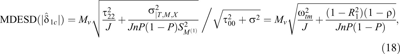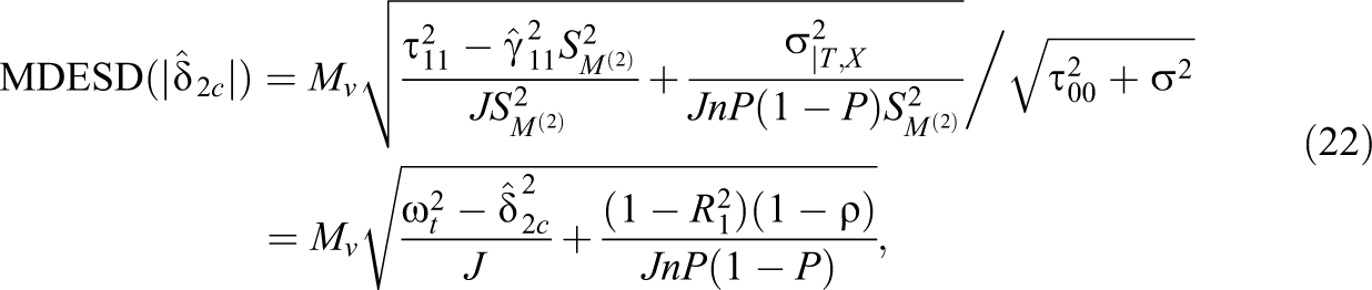 Hence, by inserting Equation 4 into Equation 17, we derived the MDESD for the standardized coefficient for a continuous Level 1 moderator as