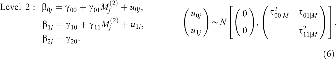 The models with a non-randomly varying slope for a Level 2 moderator (MRT2-1N-2) are as follows: