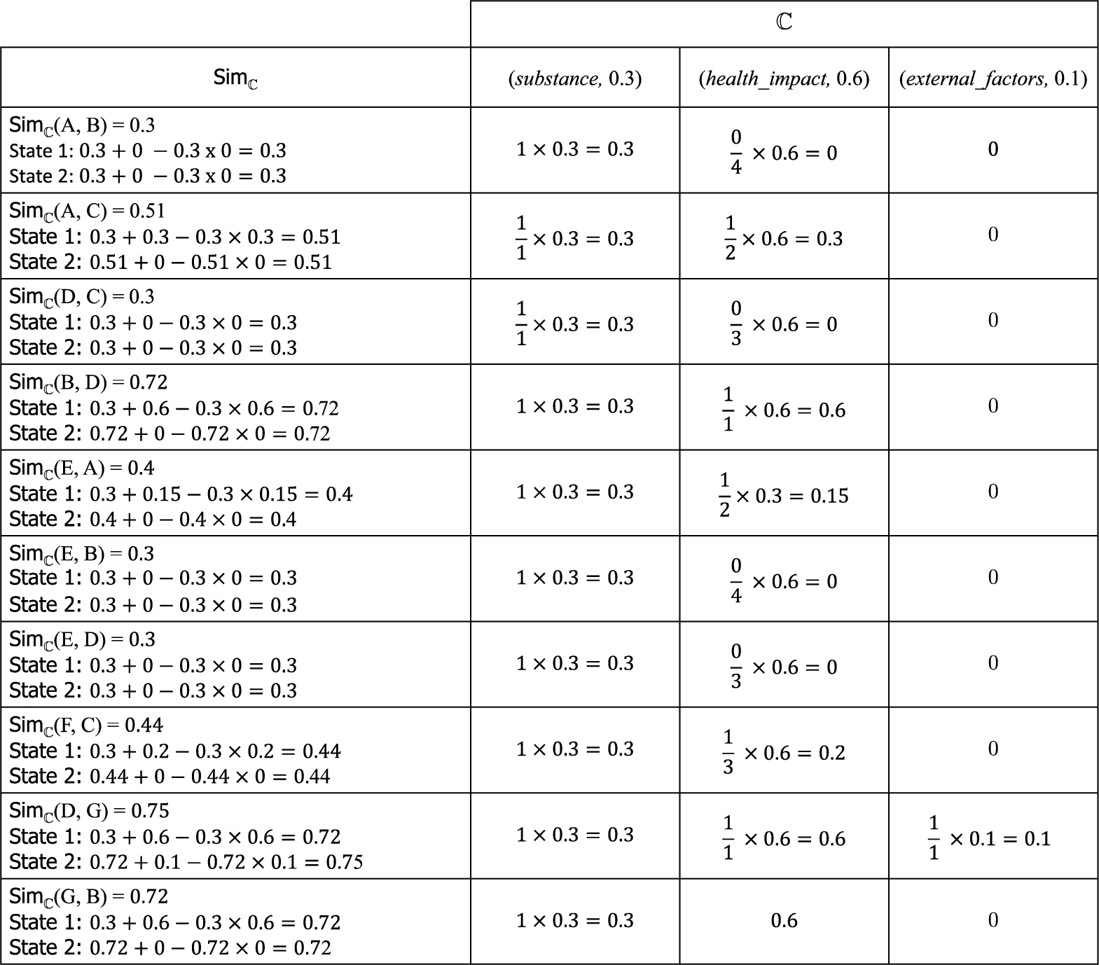Finally, we instantiate the similarity function with the maximum t-conorm as follows: