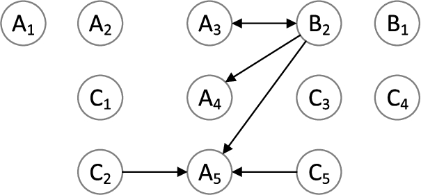 Abduction [12,17], a type of defeasible inference, can be performed using causal generalisations and abstractions: from a causal generalisation or an abstraction and by affirming the consequent, the antecedents are inferred, since if the antecedents are true it would allow us to deductively infer the consequent modus-ponens-style. Following [17], in case causes and are abductively inferred from common effect e using causal generalisations and , then and for , , are considered to be competing alternative explanations for e. We assume that causes (and ) are not in competition among themselves.
