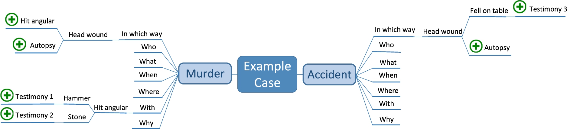 Our argumentation formalism generates an abstract AF as in Dung [13] and thus allows arguments to be formally evaluated according to Dung’s argumentation semantics. By formalising analyses performed by domain experts using the informal reasoning tools they are familiar with (e.g. mind maps) as IGs as an intermediary step, this allows for the evaluation of IGs using computational argumentation, as well as using other formal systems such as BNs [39].
