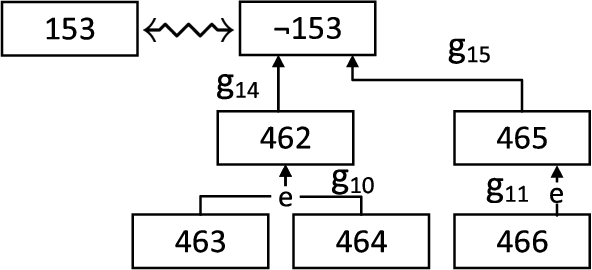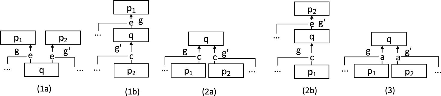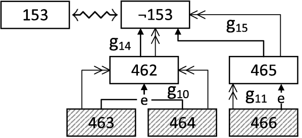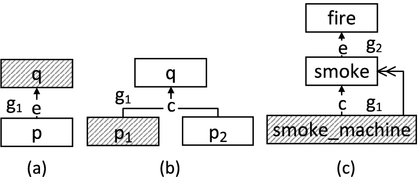 Abduction can also be performed using abstractions [4,12], where the used abstraction can either be defeasible (cf. [4]) or strict (cf. [12]). An example of a model including strict abstractions is that of Console and Dupré [12], in which both explanatory axioms (comparable to causal generalisations) and abstraction axioms are used to explain observations. Multiple explanations that are inferred using abstraction axioms can then be considered competing alternative explanations. Note that an abductive inference step with a strict abstraction is still defeasible, as it concerns an inference step from the more abstract consequent to a more specific antecedent. Following Console and Dupré [12] and Bex [4], we allow for abduction using both strict and defeasible abstractions, where in performing abduction with abstractions and the antecedents and for , , are considered to be competing alternative explanations of the common consequent q. We assume that antecedents (and ) are not in competition among themselves.