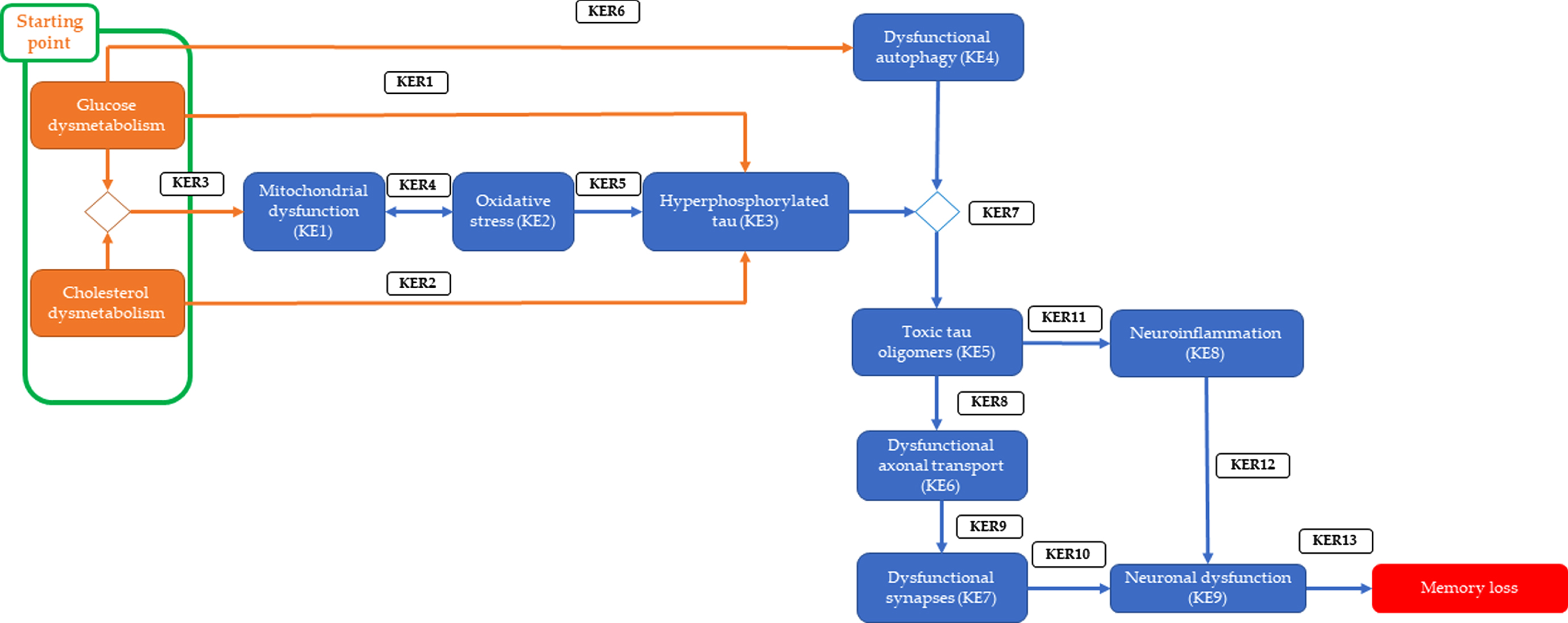 Mitochondrial dysfunction, Oxidative stress, tau hyperphos-phorylation |