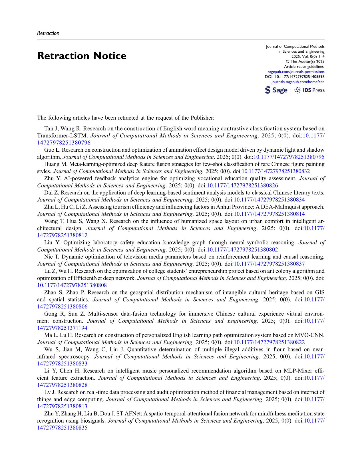 Due to concerns around author contributions, as well as concerns around the integrity of the peer review process, Sage retracts these articles.