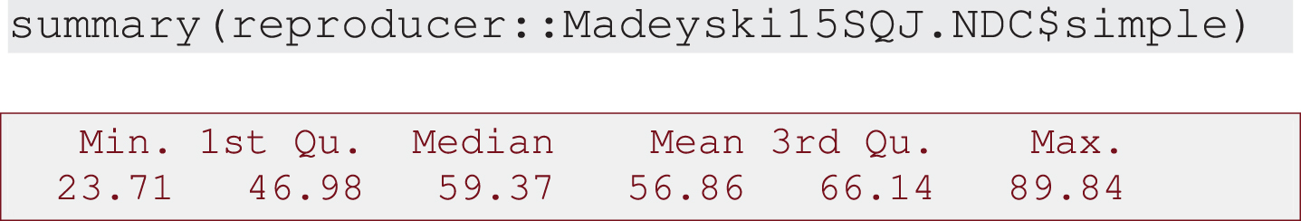 Since, as mentioned in Section 5.2, changes between packages can impede reproducibility, we recommend recording the R session info, which makes it easy for future researchers to recreate what was done in the past and which versions of the R packages were used. How to do it, as well as a result is shown inOutput 7.