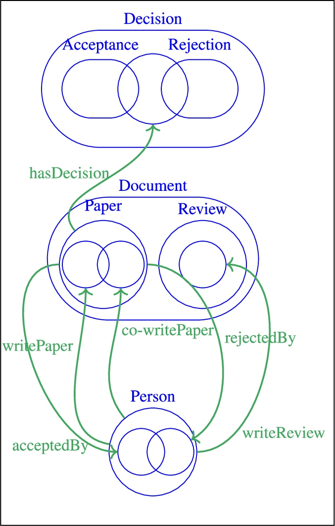 An ontology typically provides a vocabulary that describes a domain of interest and a specification of the meaning of terms used in the vocabulary. Depending on the precision of this specification, the notion of ontology encompasses several data and conceptual models, for example, sets of terms, classifications, database schemes, or fully axiomatized theories [80].