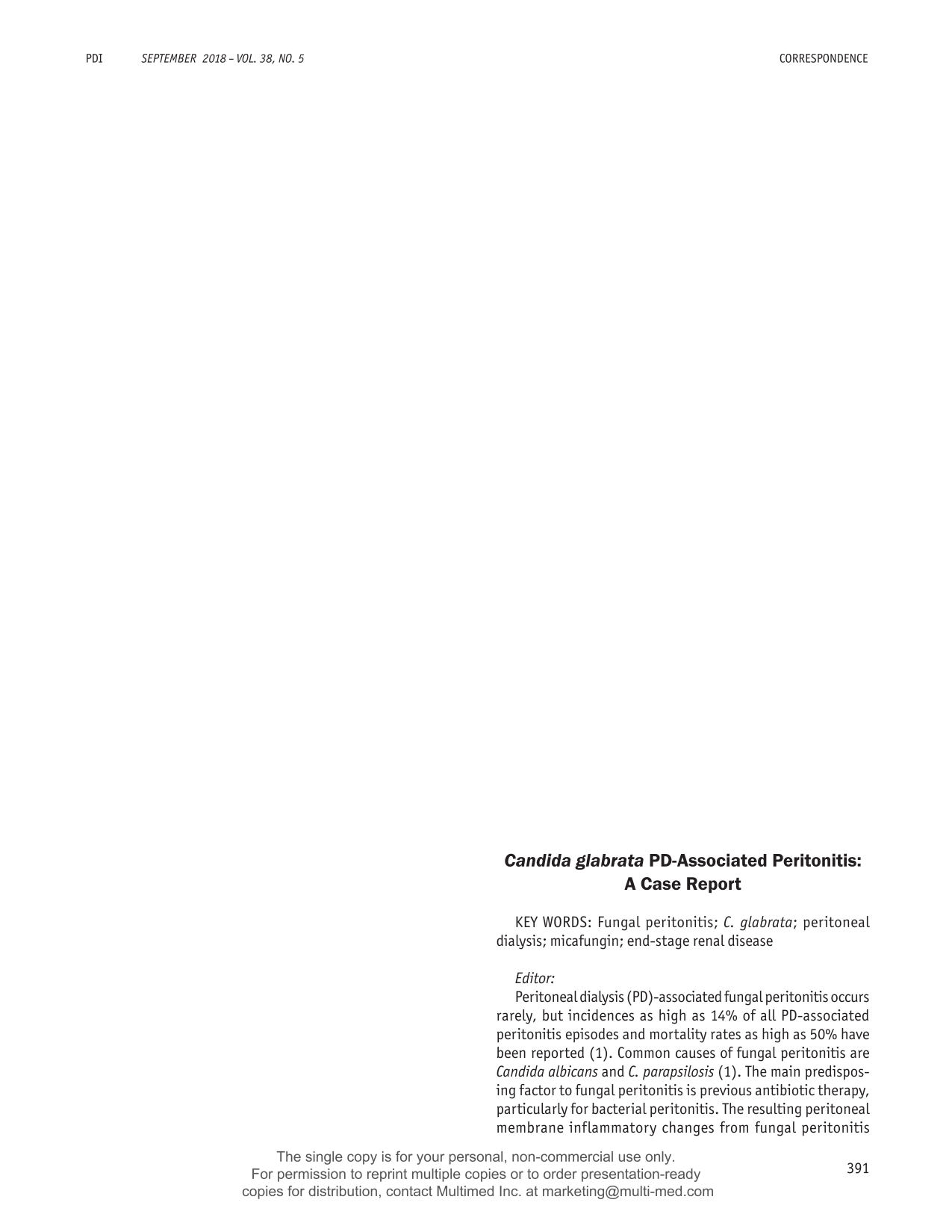 Ten-year experience with fungal peritonitis in peritoneal dialysis patients: antifungal susceptibility patterns in a North-American center. Int J Infect Dis 2012 ; 16 : e41 –3 .