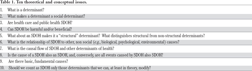 10. Should we count as SDOH only those determinants that we can, at least in theory, modify? A great public health benefit of recognizing social determinants as critical components of public health knowledge and practice is that SDOH reveal a powerful array of intervention opportunities. However, the use of knowledge of SDOH for public health benefit requires a focus on SDOH that are mutable and “actionable.” 25