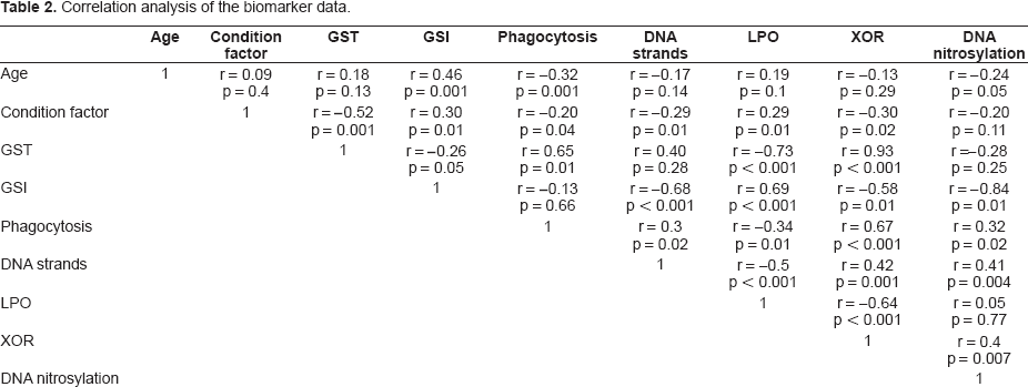 Sustained phagocytosis and the release of mediators of inflammation such as IL-2 could increase the concentrations of hydrogen peroxide and NO, which lead to the formation of peroxinitrite and reactions to genomic DNA. Indeed, NO leads to the formation of base nitration (nitrosylation) in nucleic acids (8-diazoguanine). The reduction of nitrosylated bases to amino bases underpins the measurement by NADPH-dependent diaphorase activity. The diazo bases and amino bases can form hydrogen bonds with each other and produce conformational changes in DNA, which can increase the propensity for DNA adducts and trigger a greater number of mutations. This would suggest that organisms battling infections are more susceptible to genotoxic compounds, since their DNA is already damaged by an increased number of nitrosyl adducts. This hypothesis was also consistent with the observation that age correlates negatively with DNA nitrosylation (r = −0.24; p = 0.05), owing perhaps to the weakened immune system and the generally less efficient DNA repair capacity that comes with age. In conclusion, DNA strand breaks seem to follow both pollution- and immune-mediated damage in the Fjord du Saguenay and the St. Lawrence estuary. DNA nitrosylation was significantly correlated with both the immune response (phagocytosis) and DNA damage suggesting that genotoxicity was aggravated by sustained inflammation and pollution.