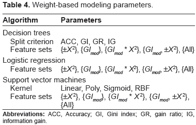 were used to generate weights. Equation 1 provides the formula for the modified version of the Gini index (