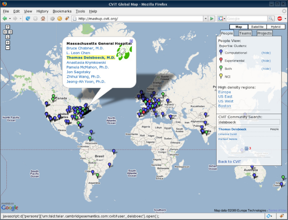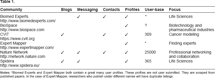 In the Life Sciences, communities such as Biomed Experts [http://www.biomedexperts.com/] 12 bring professional social-networking to the medical research world. Others include Spidera [http://spidera.eu], a European Commission-supported social network that operates as an interface of academia and small-to-medium enterprises in the health care and life sciences domain, Nature Network [http://network.nature.com], which is a professional networking site for scientists worldwide, and CViT.org [https://www.cvit.org]13–15 (see Fig. 1) an NIH/NCI-supported online community dedicated to supporting cancer modeling and simulation.