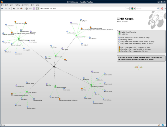 DMR graph. CViT graph shows institutions in the semantic layered Digital Model Repository and their respective users/projects.