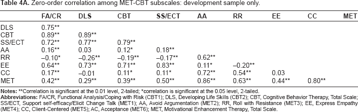 Zero-order correlation among MET-CBT subscales: development sample only.