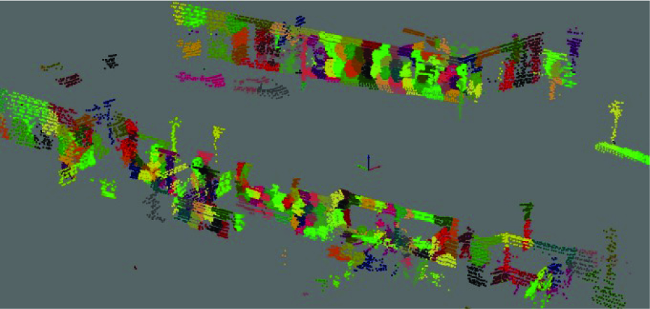 Another group of techniques for semantic segmentation of 3D point clouds is group-based techniques, which aim to solve the time-consumption problem of the point-based techniques. Lalonde et al. [15] first propose a grouping method: the saliency features (named scatter-ness, linear-ness and surface-ness) in a local neighbourhood are computed, and a parametric model of the saliency features distribution is learned by fitting a Gaussian Mixture Model using the Expectation-Maximization algorithm. Then, the 3D points that share similar characteristics are grouped into connected components. Finally, the features of the connected components are exacted to classify the different types of objects. Lim et al. [16] describe over-segmenting the 3D point clouds into super-voxels using 3D scale theory [17] and setup CRF models for super-voxels instead of 3D points with features that include colour and intensity provided by 2D images, saliency features and normal vectors of super-voxels. Similarly, Tombari et al. [18] deploy a specific grouping algorithm using salient 3D key points within the 3D point clouds and the MRF models with 3D local features to classify the 3D key points. The main limitation of this method is the uncertain affected areas of 3D key points. Another approach introduced in [19] generates a soup of segments using mean-shift clustering, considers merges between clusters of up to three neighbouring segments, and classifies the soup of segments by using spin image signatures describing an object.