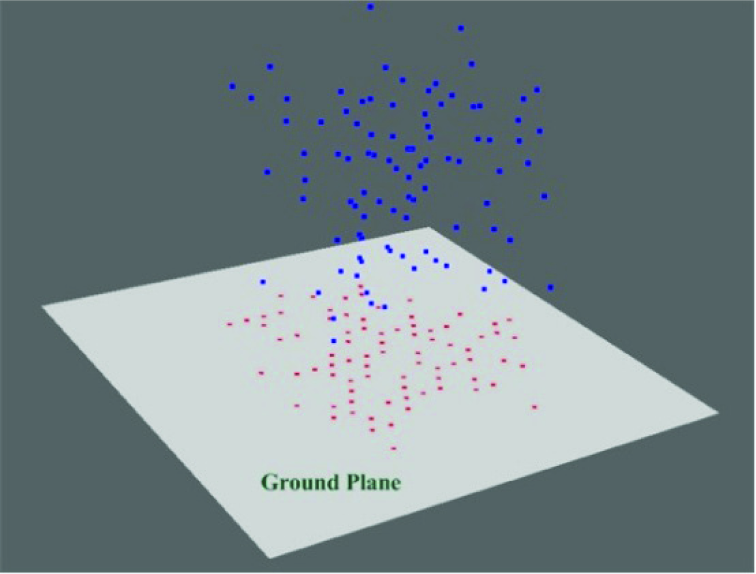 Figure 2 shows an overview of our framework. Given a 3D point cloud of an urban street scene, the proposed approach starts by finding ground points by fitting a ground plane to the scene. This is because the ground connects almost all other objects and we will use a connect component based algorithm to over-segment the point clouds in the following step. Similarly to [19], we project the points to the xy plane of the coordinate system, bin the points into grid cells of size 20cmx20cm, build a subset of points that consists of those that fall within a range of the minimum z-value in each cell, and run RANSAC plane fitting on the subset of points across all cells in the entire point cloud to obtain the ground plane estimation. The points close to the ground plane are labelled as ground and not considered in the remainder of our approach.